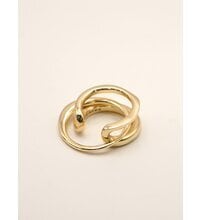 違う形のリングが連なったコネクトリングは、2本重ねて1本の指につけたり、1本ずつ指に通して2フィンガーリングにしたりと、2WAYとして着用可能となっております。リングのデザインもそれぞれ太さや形状が違うので、着ける角度によって見え方を変えることができます。リング裏面には「CHIGNON」の刻印入り。