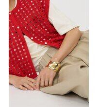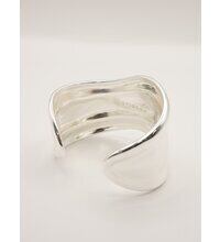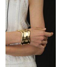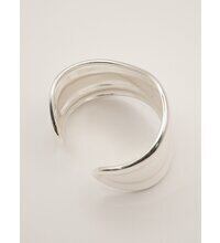 ボリュームのある幅広バングルは、滑らかなウェーブラインとやや厚みのあるメンズライクな重量感が特徴的で、1本着けるだけでシンプルなカジュアルコーデにアクセントを与えてくれます。素肌にそのままつけるのはもちろん、シャツやロンTの上から包み込むようにつけるとぐっとこなれ感が増します!また、ワイドバングルなので手元の細見え効果も◎