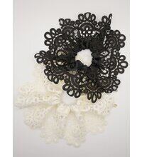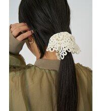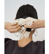 ボリューム感あるケミカルレースのシュシュは、髪に結ぶだけで大人可愛いトレンド感のあるヘアスタイルに仕上げてくれます。フリルが効いてるエレガントなデザインは、腕に垂らすようにつけても可愛いのでおすすめです。普段使いはもちろん、オケージョンコーデにも合わせやすい上品なヘアアクセサリーとなっております。オーバルプレートには「CHIGNON」の刻印入り。※商品の素材の性質上、汗や、水濡れ、摩擦により色落ちし、他の衣類に色が移ることがありますのでご注意ください。ご使用の際は水濡れ・汗・摩擦等にご注意の上、ご愛用頂きますようお願いいたします。