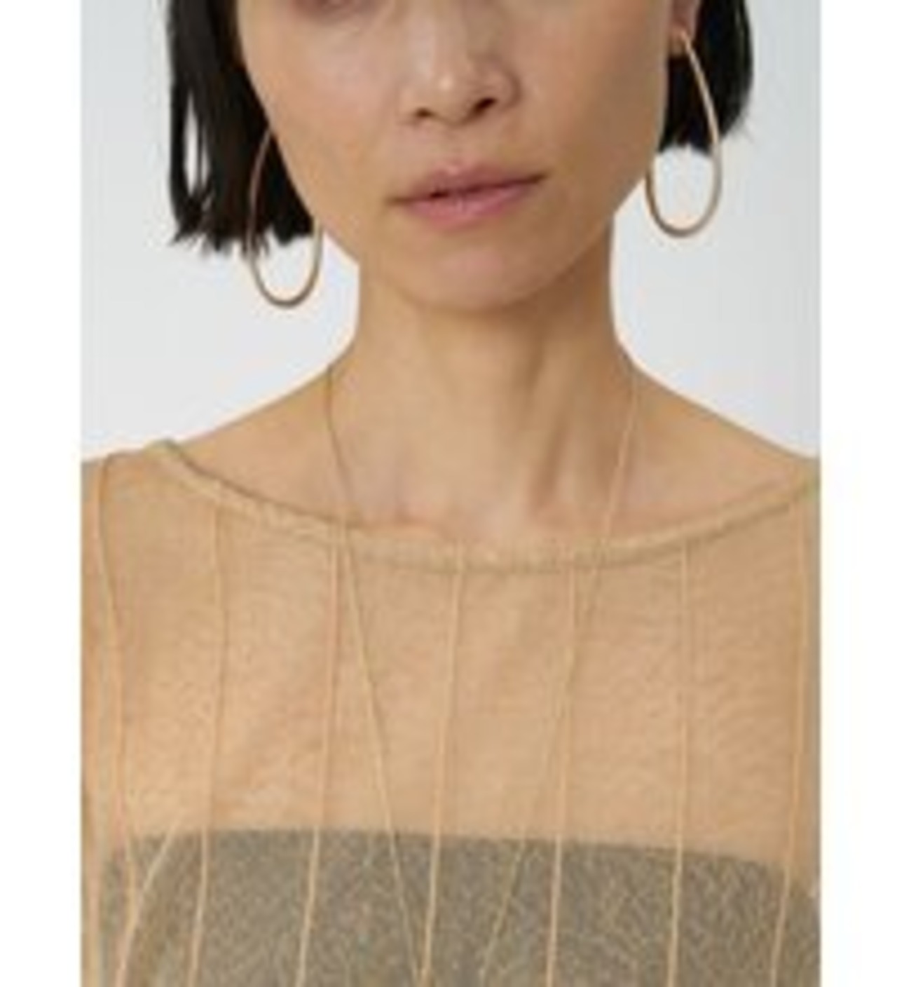 ドロップ型の大振りフープイヤリングは、前から見るとピアスをつけているようなシンプルな仕様にしています。線径の太さを箇所によって少しずつ変えているので単調になりすぎず&独特なニュアンス感が出過ぎないようにスッキリしたデザインに仕上げています。大振りなサイズなので小顔効果も◎背面内側には「CHIGNON」の刻印入り。同型ピアスもご用意いたしております。