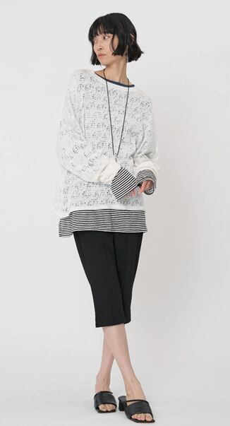 目を落としてドット柄を変形させて作ったスカシ柄ニットプルオーバー。