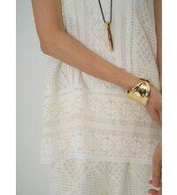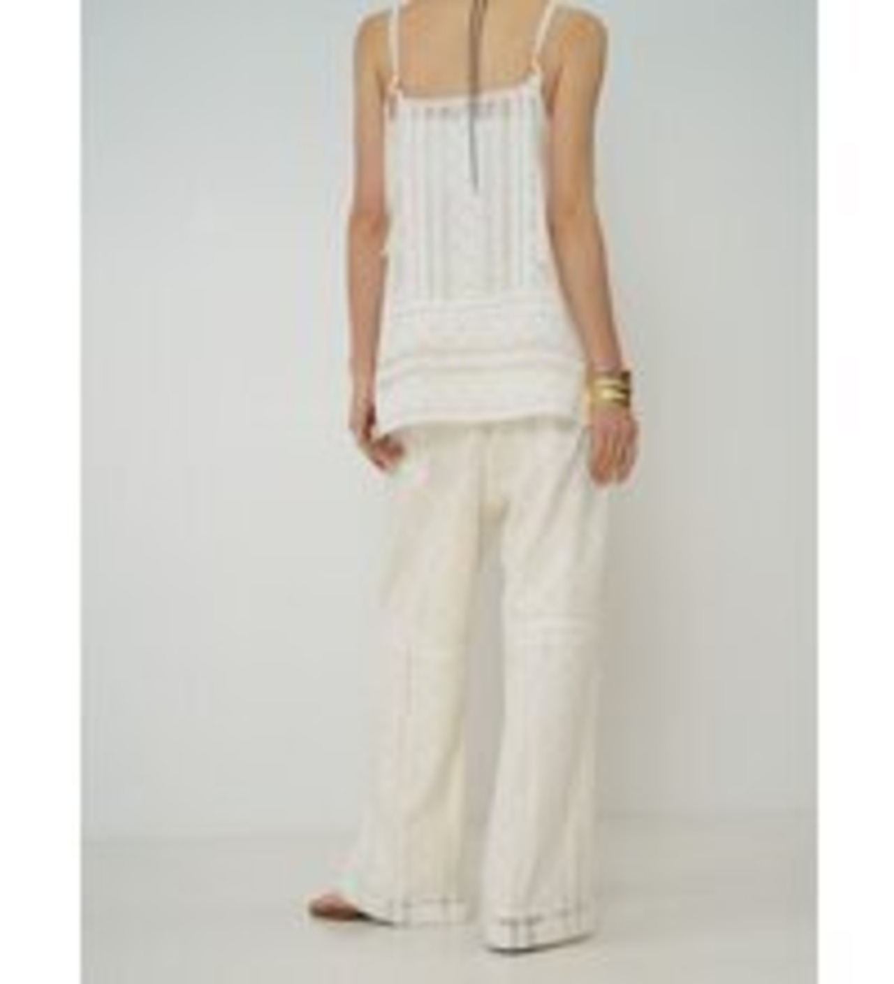 表情の異なる2種類のレースとテープレースを贅沢に組み合わせた、パッチワークデザインのキャミソールです。