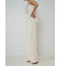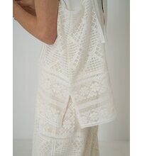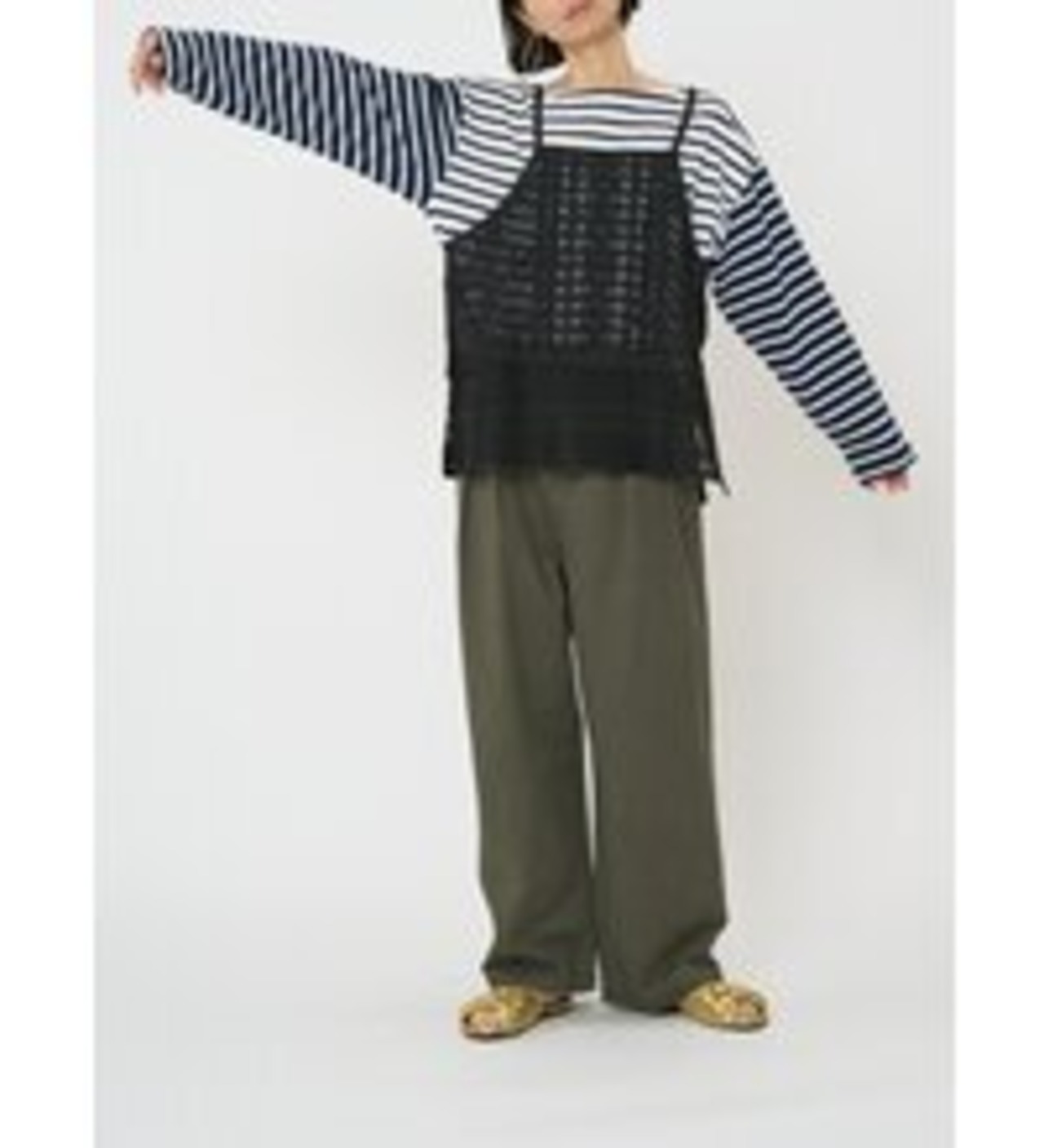今季のトレンドであるデニムやヴィンテージスタイルに欠かせないレースアイテムを、綿混のナチュラルカジュアルな素材感で表現。エレガントになりすぎず、普段使いしやすい仕上がりです。