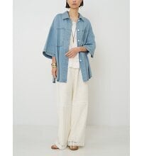リヨセル混の柔らかな落ち感が特徴のデニム素材を使用した、カジュアルながらも女性らしさを引き立てる一着。