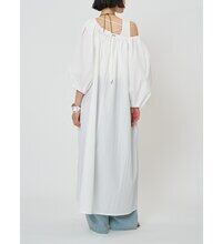 広く開いた衿ぐりがデコルテをすっきりと見せてくれる、リラクシーな大人ワンピース。