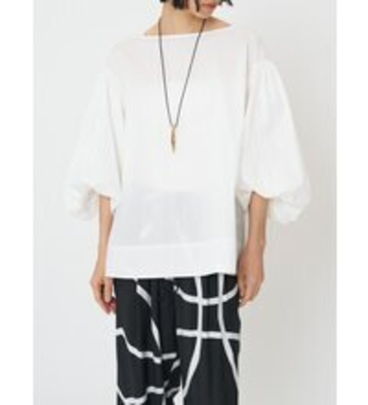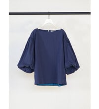潔いスラッシュドネックと、ボリュームたっぷりのバルーンスリーブとのコントラストがキャッチーな、1枚で映えるプルオーバーです。