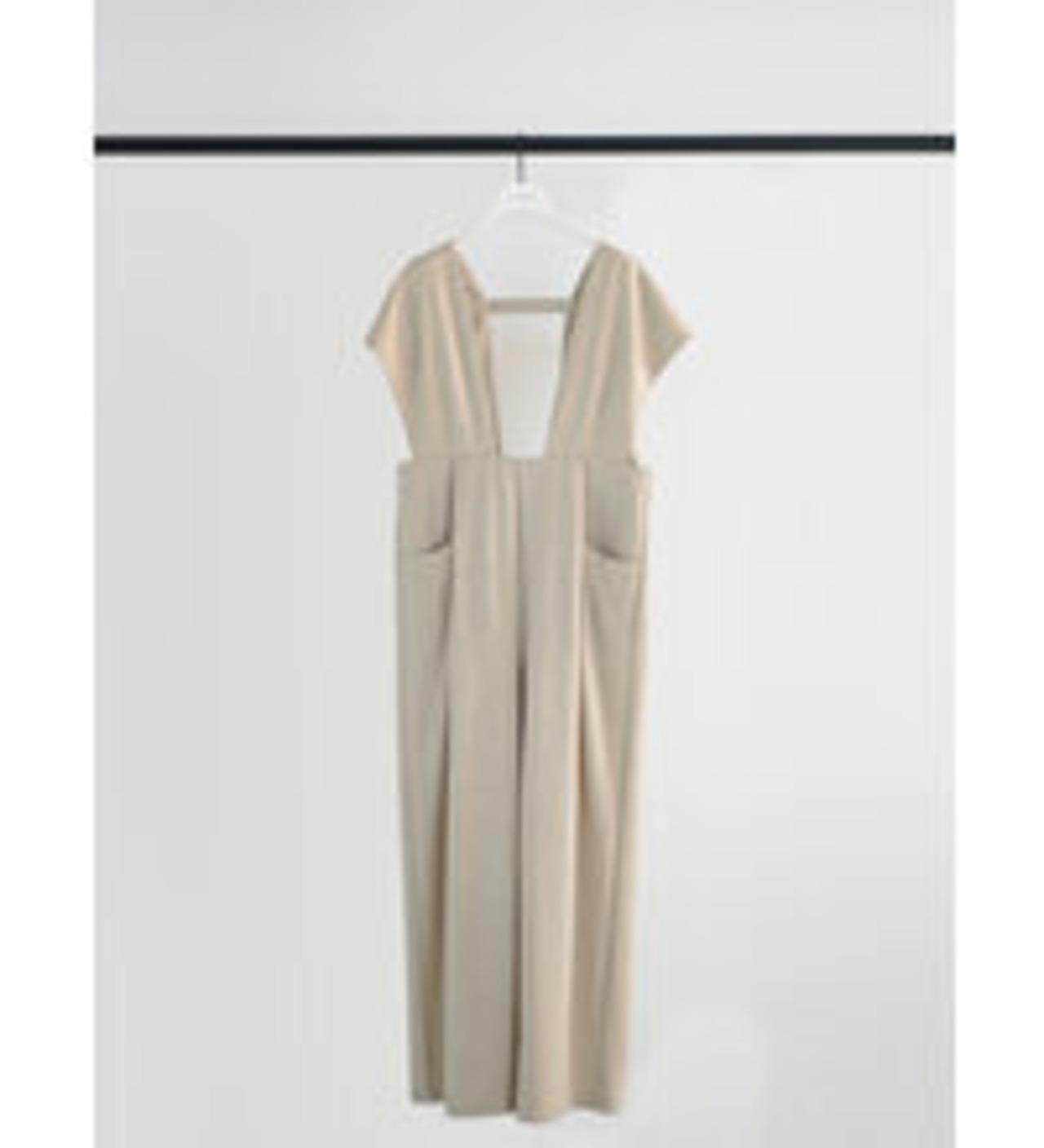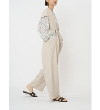 ポリエステルベースに麻(リネン)をブレンドした、絶妙なミックス感を持つ素材のコンビネゾン。