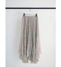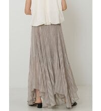 ウエストから入った繊細なプリーツは、裾に向かって自然に消えていくデザインで歩くたびにふわりと広がるシルエットが、シアー素材の魅力を引き立てます。