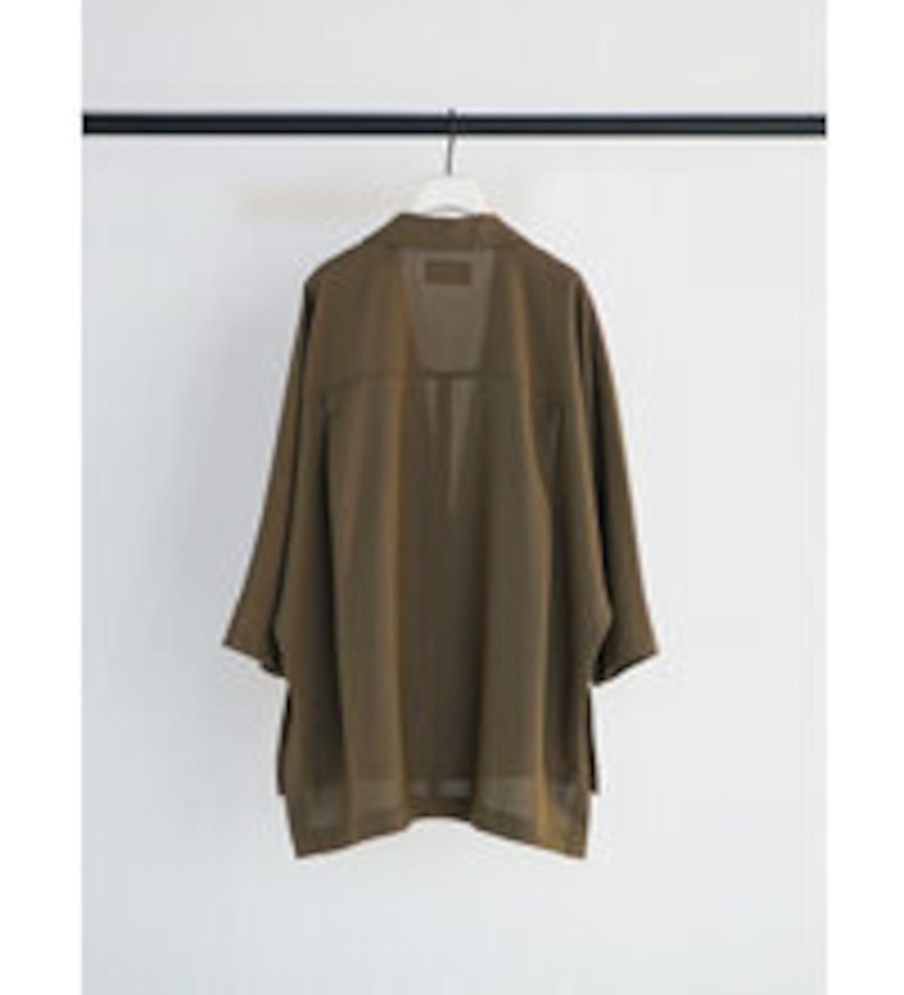 麻混のメッシュ素材を使用した、ドルマンスリーブジャケット。