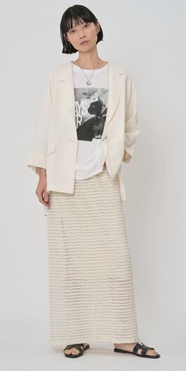 同素材で2561-028BZのスカートも作っていますので、セットアップでの着用もお勧めです。