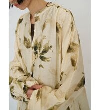 さらりとした素材感とゆとりのあるシルエットで、袖口にはさりげないギャザーを寄せ、ボリュームのあるスリーブが女性らしい柔らかさをプラス。