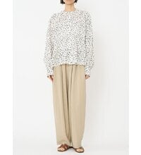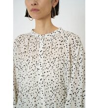 ドット柄を使用した、シャーリングデザインのブラウス。