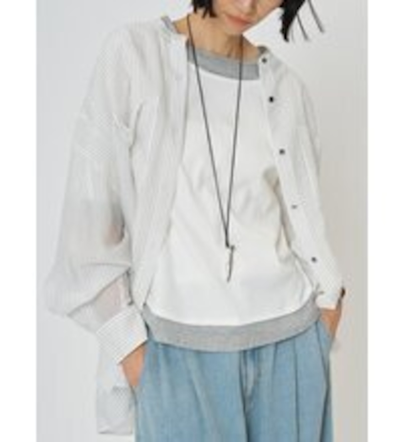 ニットやスウェットの下に重ねてシアー感を楽しんだり、Tシャツやタンクトップの上に軽く羽織って日除け・冷房対策にもでき、長いシーズン活躍するアイテムです。