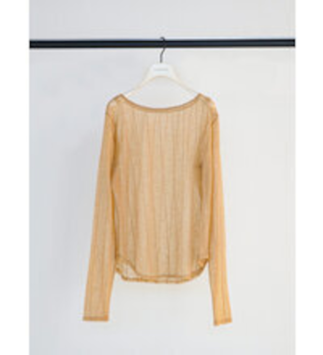 繊細なストライプ柄チュールを使用した、ほどよい透け感とゆるさが絶妙なシアートップス。