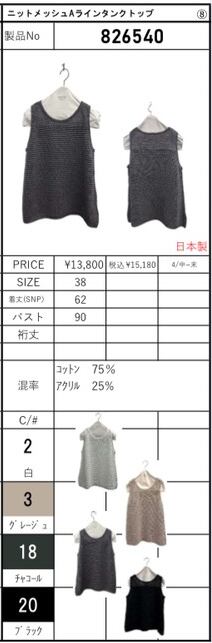 【ご予約品】《ayane》ニットメッシュAラインタンクトップ 826540【送料無料】納期 4中~末