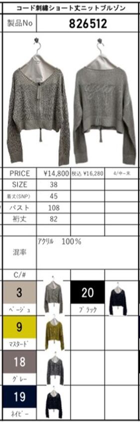 【ご予約品】《ayane》コード刺繍ショート丈ニットブルゾン 826512【送料無料】納期 4中~末