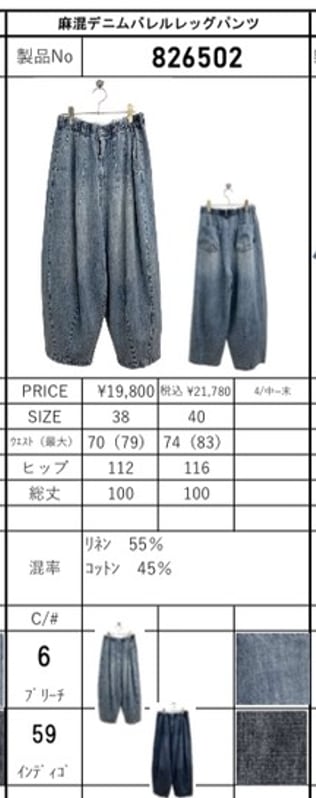 【ご予約品】《ayane》麻混デニムバレルレッグパンツ 826502【送料無料】納期 4中~末