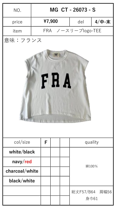 【ご予約品】《MARGAUX VINTAGE》 FRA ノースリーブlogo-TEE ( MG CT - 26073 - S) 納期 4/中-末