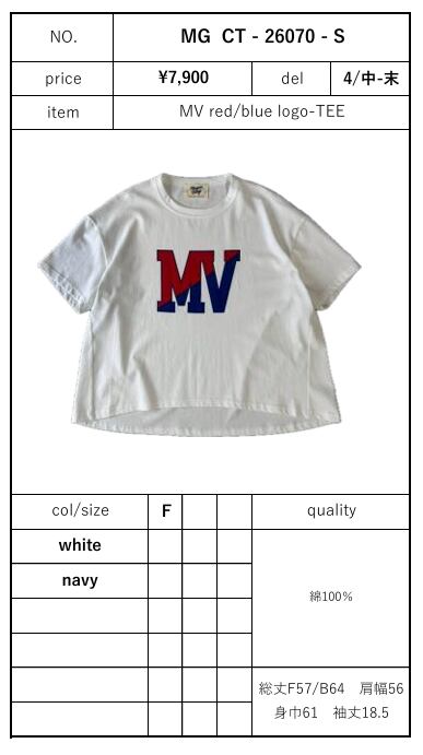 【ご予約品】《MARGAUX VINTAGE》 MV red/blue logo-TEE ( MG CT - 26070 - S) 納期 4/中-末