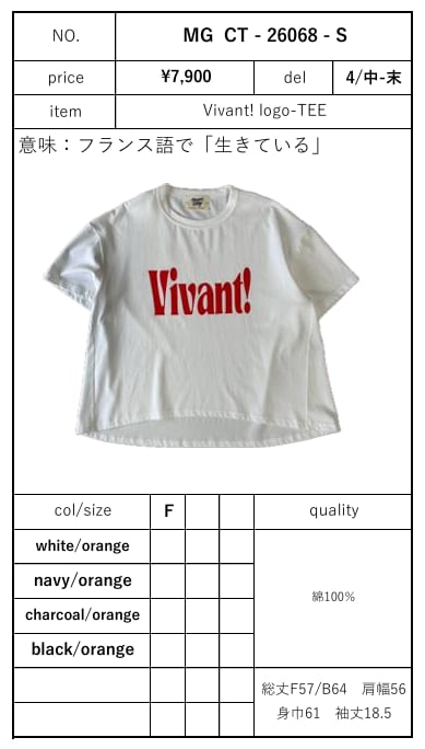 【ご予約品】《MARGAUX VINTAGE》Vivant! logo-TEE (MG CT - 26068 - S) 納期 4/中-末