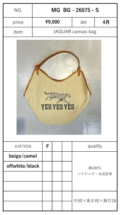 【ご予約品】《MARGAUX VINTAGE》JAGUAR canvas bag (MG BG - 26075 - S) 納期 4