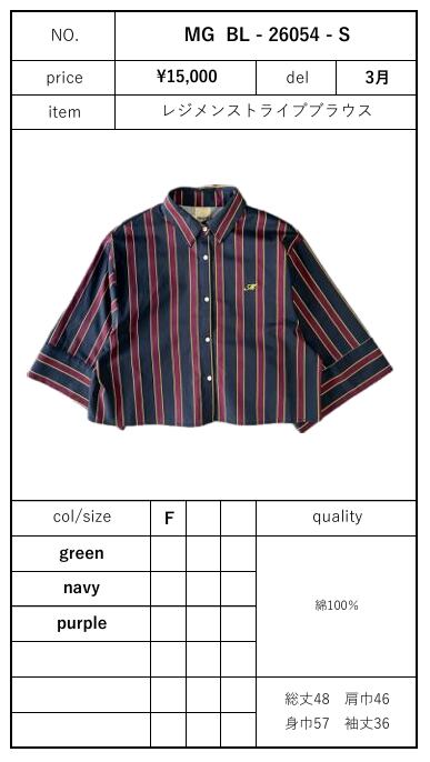 【ご予約品】《MARGAUX VINTAGE》レジメンストライプブラウス ( MG BL - 26054 - S)【送料無料】納期 3