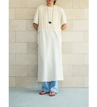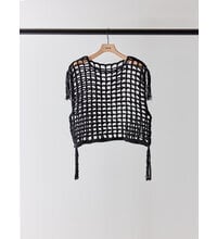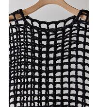 手編みで編み上げたスクエアメッシュ柄のニットトップスです。