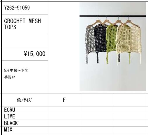 【ご予約品】《YENN》CROCHET MESH TOPS [Y262-91059]【送料無料】 納期 5中~下