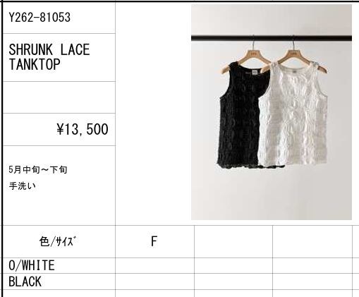 【ご予約品】《YENN》SHRUNK LACE TANKTOP [Y262-81053]【送料無料】 納期 5中~下
