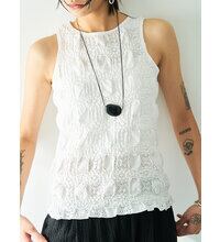 インパクトのある生地をシンプルなタンクトップに採用することで、甘くなりすぎないカジュアル好きな方に着ていただきたいレースアイテムに仕上げました。