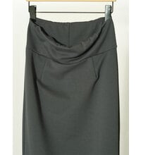 又、デザインポイントとして後ろのスリットにファスナーをつけ、さらにスリットを深く開けて着用できるようにしています。ベーシックで飽きの来ないデザイン、ダブルジャージーのしっかりとした素材など、長く着用していただける要素が多い、使い勝手の良いスカートです。