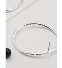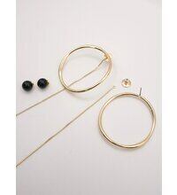滑らかで抑揚感のある線で仕上げた丸フープピアスは今回輪っか部分を前にしたデザインに仕上げております。強弱のある線形と湾曲したフープにきらっと揺れるチェーン&オニキスキャッチ組み合わせは、凛とした力強い女性らしさもありつつ、軽やかに動きのあるデザインとなっております。チェーン部分は取り外し可能なので両耳につけるのはもちろん、片耳のみにつけたり、お手持ちのピアスにつけたりと万能に使えます。キャッチはオニキスの他に、メタルの円盤真鍮キャッチをご用意しました。高見えする2種類のキャッチなので着用時、後ろからの見え方も◎フープ内側には「CHIGNON」の刻印入り。