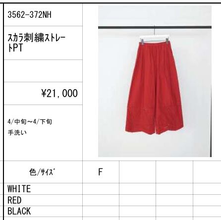 【ご予約品】《CHIGNON》スカラ刺繍ストレートPT [3562-372NH]【送料無料】 納期 4中~下