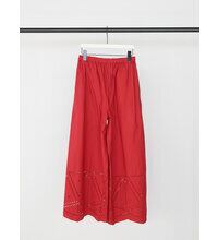 裾に施されたカットワーク刺繍が印象的なストレートワイドパンツです。