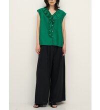 フロントはボタン開きの仕様なので、ブラウスとしてはもちろん、軽い羽織りとしても活躍。様々な着こなしを楽しめる、幅広く使えるアイテムです。