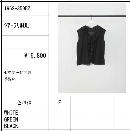 【ご予約品】《CHIGNON》シアーフリルBL [1962-359BZ]【送料無料】 納期 4中~下