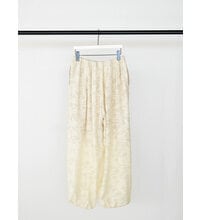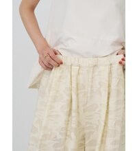 今季のトレンドアイテムのバルーンパンツを意匠生地で提案。横畝に太い糸を走らせた、表情豊かなカットジャカードを使用しました。一目でわかる凹凸感と陰影は、クラフト感がありつつ、どこかモードな雰囲気も漂わせる高級感を併せ持った素材です。