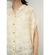 シルエットは、からだをふわりと包み込むワイドシルエットのフレンチスリーブシャツ。動きに合わせて泳ぐように揺れる分量感が、軽やかな抜け感を演出し、気になる体型もさりげなくカバーします。