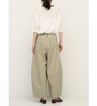 腰まわりに程よいゆとりを持たせ、裾に向かって丸みのあるシルエットが女性らしい抜け感を演出します。
