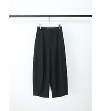 程よいハリのある素材なのでキレイなコクーンシルエットに。後より前側に分量感を多く設定し、ボリュームを感じながらもスッキリとしたラインで、コーディネートしやすいボトムになっています。メンズライクなスラックスをイメージしたウォッチポケットもアクセント。単品使いではもちろん、同素材のジレとセットアップでのコーディネートでモード感のあるスタイルもおススメです。