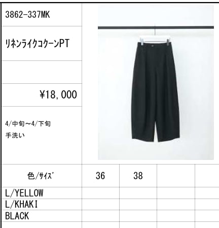 【ご予約品】《CHIGNON》リネンライクコクーンPT [3862-337MK]【送料無料】 納期 4中~下