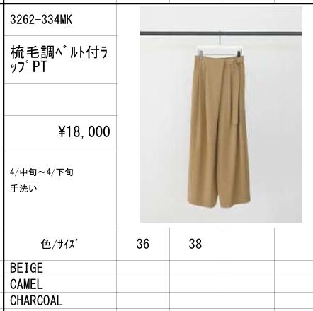 【ご予約品】《CHIGNON》梳毛調ベルト付きラップPT [3262-334MK]【送料無料】 納期 4中~下