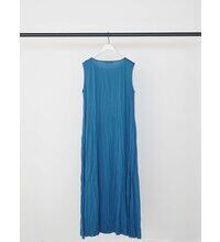 6枚のパターンで構築したAラインシルエットにシワ加工を施したデザインワンピース。上身頃はあえて加工を入れず、分量の多い裾部分にむけて1点1点加工を施し、すっきりと見える印象に。