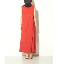 シワ加工による縦の陰影がスタイルアップ効果を生み、からだのラインを拾わずに、1枚着用するだけでこなれ感があるバランスに。シワを気にせず着用できるため、デイリーから旅行、リゾート需要まで幅広く対応します。