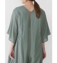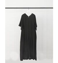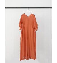 すっきりとしたVネック、ストンと落ち感のある5分袖、ボリューム感あるワイドシルエット。