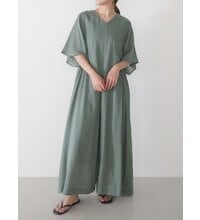やわらかで軽やかな、光沢感ある素材を活かしたワイドパンツオールインワン。