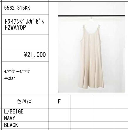 【ご予約品】《CHIGNON》トライアングルガゼット2WAYOP [5562-315KK]【送料無料】 納期 4中~下