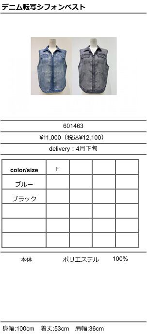 【ご予約品】《CYAN》デニム転写シフォンベスト 601463【送料無料】 納期 4下