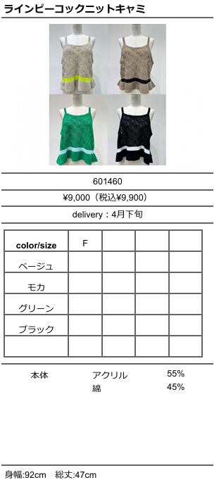 【ご予約品】《CYAN》ラインピーコックニットキャミ 601460 納期 4下