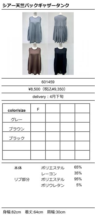【ご予約品】《CYAN》シアー天竺バックギャザータンク 601459 納期 4下
